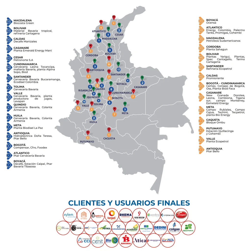 Nuestra empresa, gracias a su experiencia de más de 30 años, ha desarrollado montajes, proyectos y fabricaciones especiales en diversas ciudades de Colombia. Hemos trabajado en plantas industriales, cervecerías, refinerías y otros sectores estratégicos, consolidando nuestra presencia y destacándonos por nuestra contribución al crecimiento del país.
